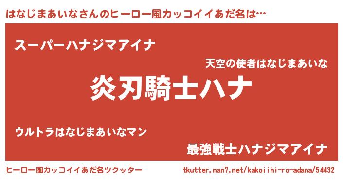 | 男性向けラノベタイトル風あだ名 | 『はなじまあいなの嫁は女の子じゃないと思った?』 |