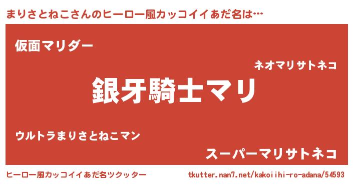 | 男性向けラノベタイトル風あだ名 | 『まりさとねこの嫁は女の子じゃないと思った?』 |