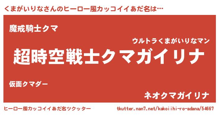 | 意味不明あだ名 | 『自称くまがいりな』 |