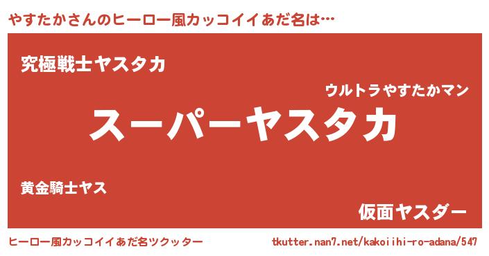 | 男性向けラノベタイトル風あだ名 | 『やすたかの憂鬱』『ヤスタカスレイヤー』 |