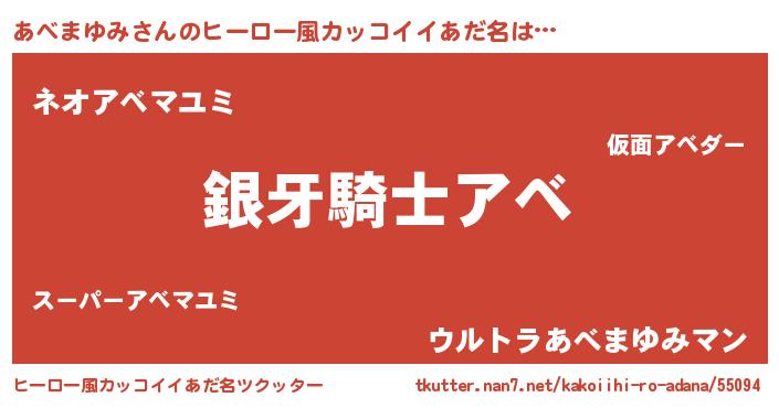 | ポケモン風あだ名 | 『ヒアベマユミ』『ゼニアベ』 |
