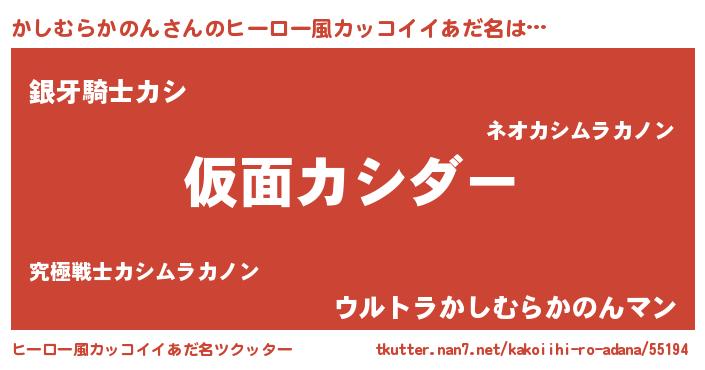 | 男性向けラノベタイトル風あだ名 | 『この素晴らしい世界にかしむらかのんを!』 |