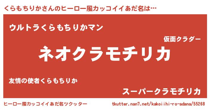 | 胡散臭い通販商品みたいなあだ名 | 『前代未聞の健康食品…その名も「くらもちりか」』 |