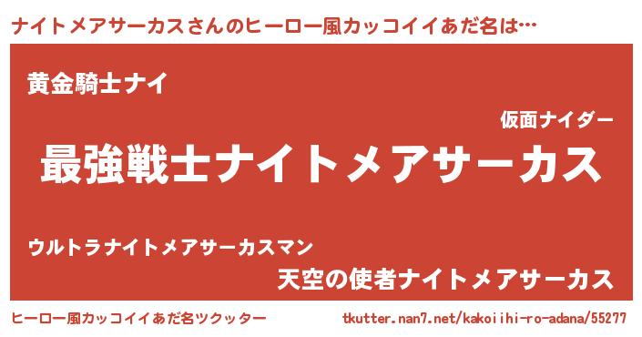 | ポケモン風あだ名 | 『ナイセウス』『ヒナイトメアサーカス』 |