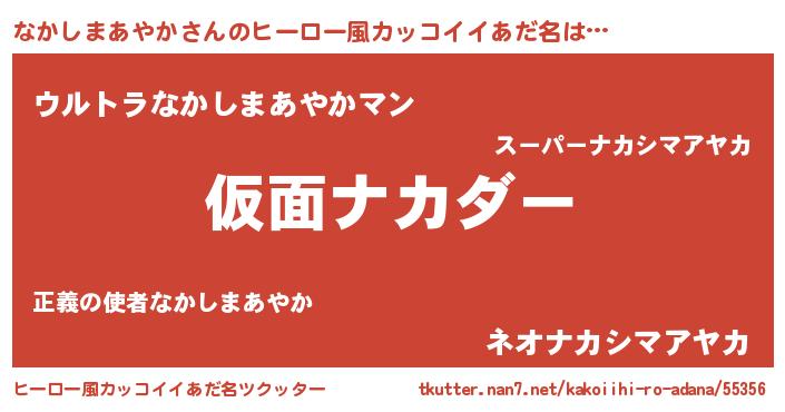| 男性向けラノベタイトル風あだ名 | 『魔弾の王となかしまあやか』 |