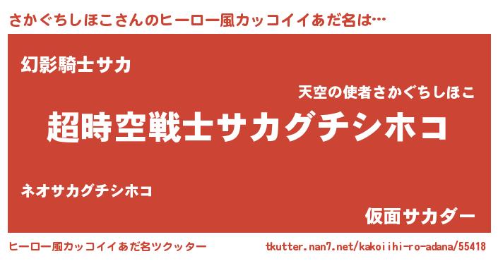 | 意味不明あだ名 | 『自称さかぐちしほこ』 |