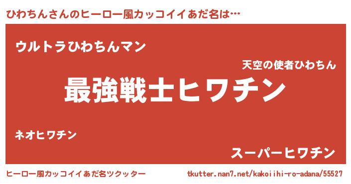 | ファンタジー風あだ名 | 『ゼヒワトゥ』『エターナルヒワチンー』 |