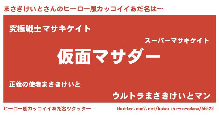 | 男性向けラノベタイトル風あだ名 | 『この素晴らしい世界にまさきけいとを!』 |