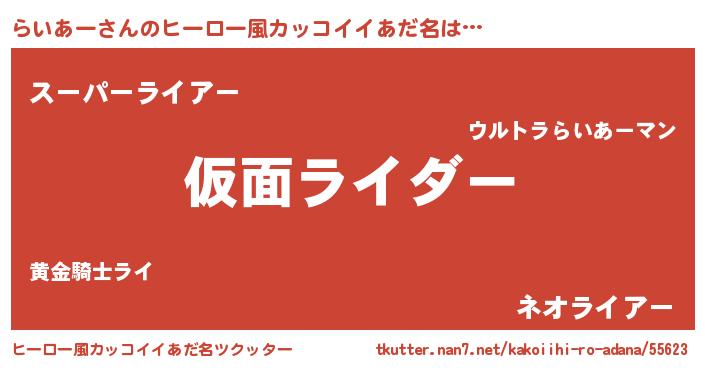 | 男性向けラノベタイトル風あだ名 | 『この素晴らしい世界にらいあーを!』 |