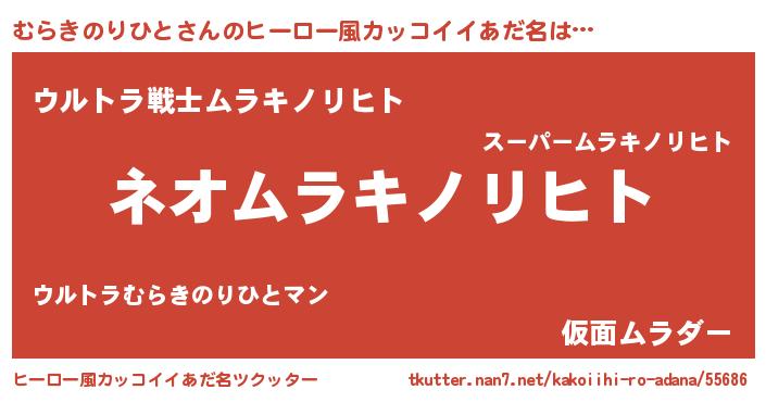 | 男性向けラノベタイトル風あだ名 | 『むらきのりひと~年齢イコール彼女いない歴の魔法使い~』 |