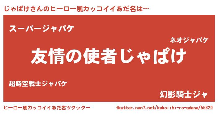 | 男性向けラノベタイトル風あだ名 | 『おまえをオタクにしてやるから、俺をじゃぱけにしてくれ! 』 |
