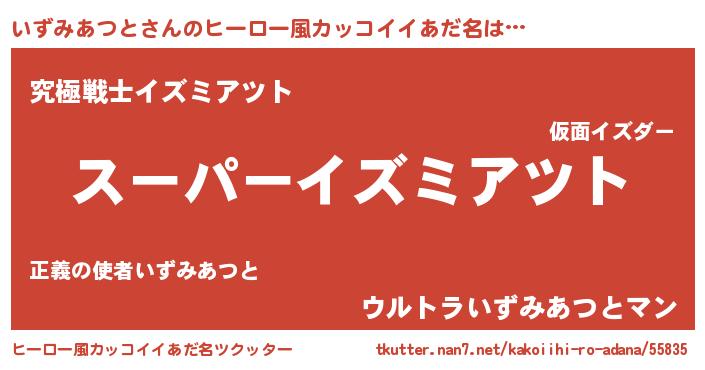 | 男性向けラノベタイトル風あだ名 | 『イズミアツトアートオンライン』 |