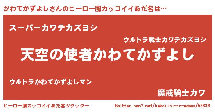| 男性向けラノベタイトル風あだ名 | 『ノーゲーム・ノーカワテカズヨシ』 |