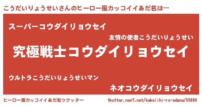 | 男性向けラノベタイトル風あだ名 | 『Re:こうだいりょうせいから始める異世界生活』 |