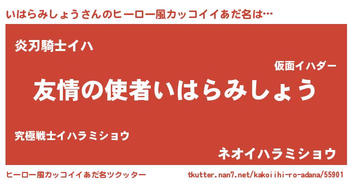| 男性向けラノベタイトル風あだ名 | 『おまえをオタクにしてやるから、俺をいはらみしょうにしてくれ! 』 |