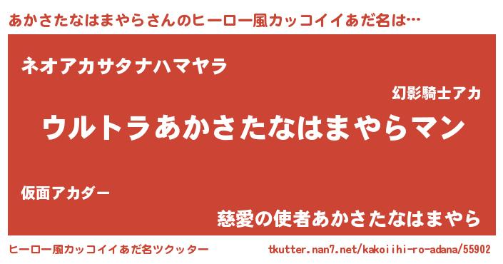 | 男性向けラノベタイトル風あだ名 | 『やはりあかさたなはまやらの青春ラブコメはまちがっている 』 |