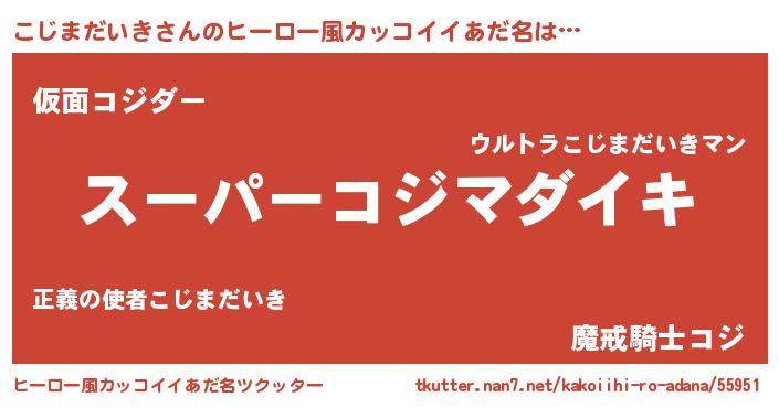 | 男性向けラノベタイトル風あだ名 | 『こじまだいき~年齢イコール彼女いない歴の魔法使い~』 |