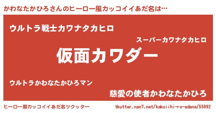 | 男性向けラノベタイトル風あだ名 | 『この素晴らしい世界にかわなたかひろを!』 |