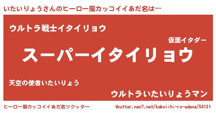 | 男性向けラノベタイトル風あだ名 | 『いたいりょうの憂鬱』 |