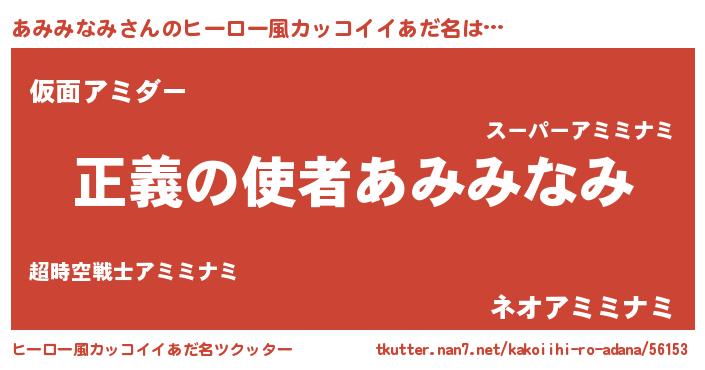 | 男性向けラノベタイトル風あだ名 | 『緋弾のアミミナミ』 |