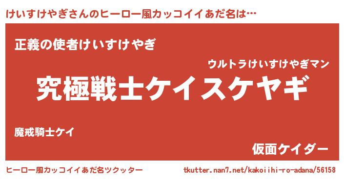| 男性向けラノベタイトル風あだ名 | 『Re:けいすけやぎから始める異世界生活』 |