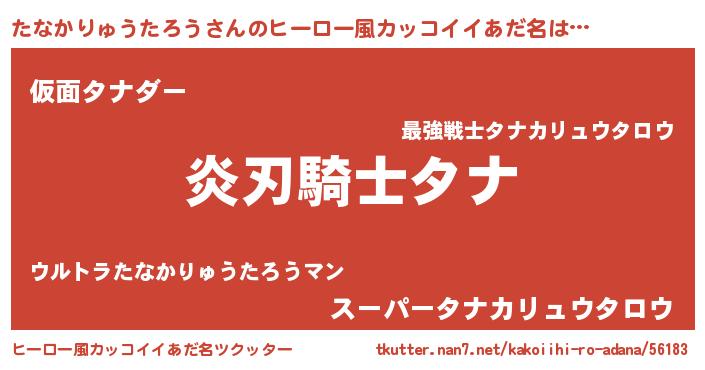| ポケモン風あだ名 | 『ヒタナカリュウタロウ』『タナゴンZ』 |