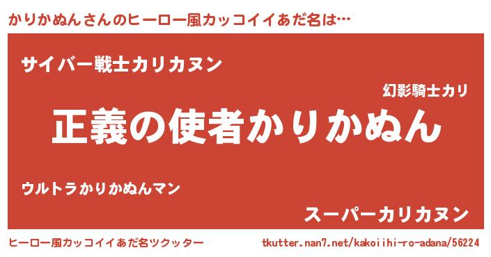 | 男性向けラノベタイトル風あだ名 | 『緋弾のカリカヌン』 |