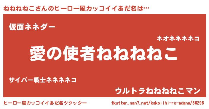 | 男性向けラノベタイトル風あだ名 | 『転生したらねねねねこだった件』 |