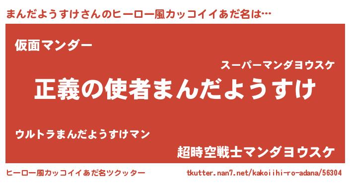 | 男性向けラノベタイトル風あだ名 | 『おまえをオタクにしてやるから、俺をまんだようすけにしてくれ! 』 |