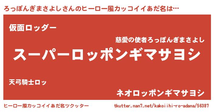 | 男性向けラノベタイトル風あだ名 | 『ロッポンギマサヨシアートオンライン』 |