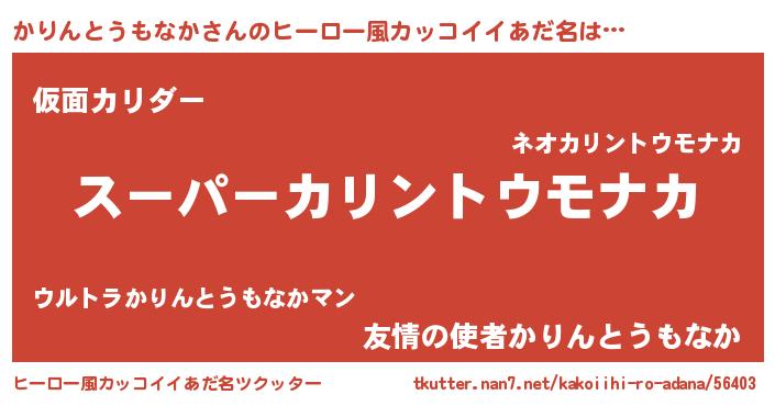 | 男性向けラノベタイトル風あだ名 | 『かりんとうもなか~年齢イコール彼女いない歴の魔法使い~』 |