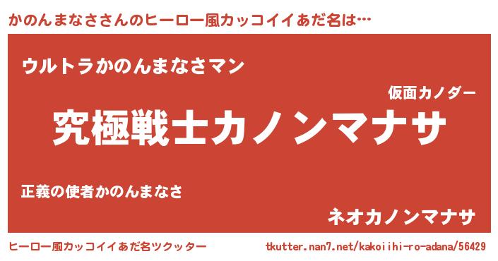 | 男性向けラノベタイトル風あだ名 | 『Re:かのんまなさから始める異世界生活』 |