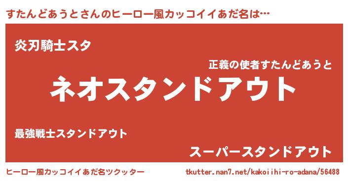 | 男性向けラノベタイトル風あだ名 | 『すたんどあうとという概念が存在しない退屈な世界 』 |