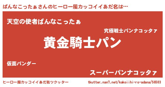 | 女子向けラノベタイトル風あだ名 | 『ぱんなこったぁは平凡を望む』 |
