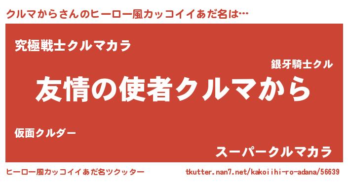 | 男性向けラノベタイトル風あだ名 | 『クルマカラスレイヤー』 |