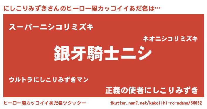 | 女子向けラノベタイトル風あだ名 | 『にしこりみずきの卵を拾いまして』 |