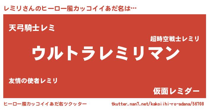 | 男性向けラノベタイトル風あだ名 | 『やはりレミリの青春ラブコメはまちがっている 』 |