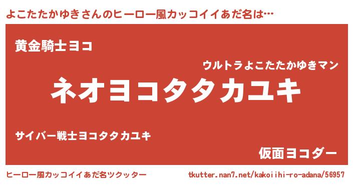 | 男性向けラノベタイトル風あだ名 | 『うちのよこたたかゆきが世界を掌握している!』 |