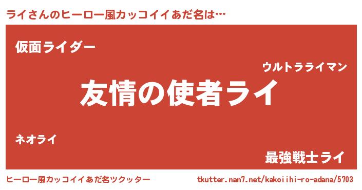 | 女子向けラノベタイトル風あだ名 | 『シンデレラライ家の靴箱館』『闇のライ』 |
