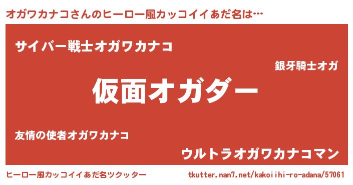 | 男性向けラノベタイトル風あだ名 | 『魔弾の王とオガワカナコ』 |