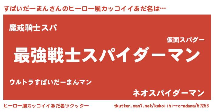 | 男性向けラノベタイトル風あだ名 | 『Re:すぱいだーまんから始める異世界生活』 |