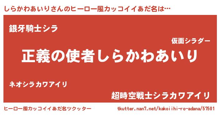 | 男性向けラノベタイトル風あだ名 | 『おまえをオタクにしてやるから、俺をしらかわあいりにしてくれ! 』 |