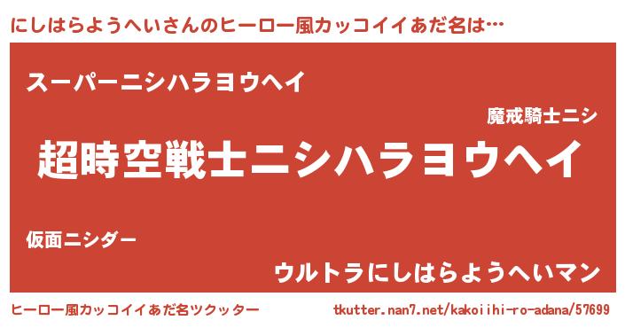 | 意味不明あだ名 | 『自称にしはらようへい』 |