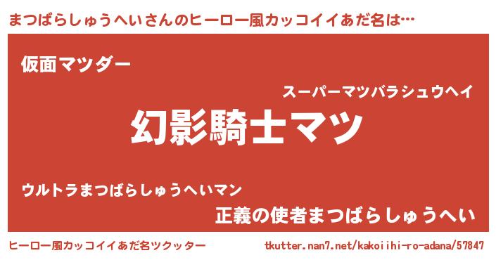| 意味不明あだ名 | 『とにかく怪しいまつばらしゅうへい』 |