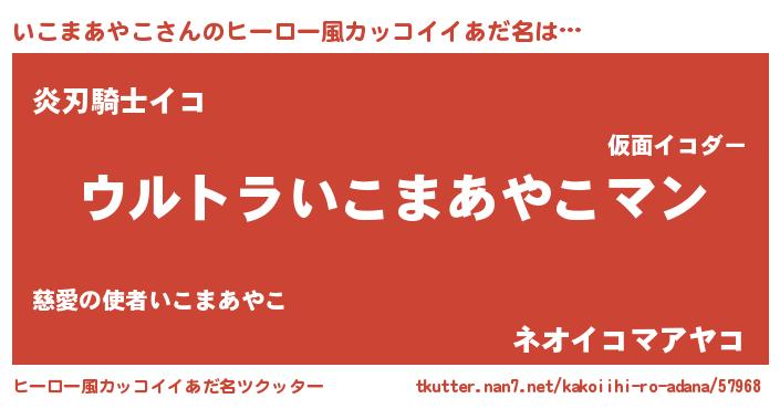 | 女子向けラノベタイトル風あだ名 | 『いこまあやこの玉の輿計画!』 |