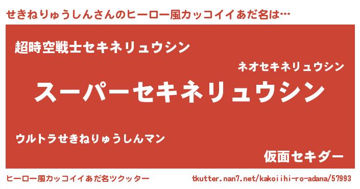 | 男性向けラノベタイトル風あだ名 | 『せきねりゅうしんの憂鬱』 |