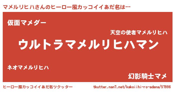 | 欧米人風あだ名 | 『マメルリヒハクリステル』 |