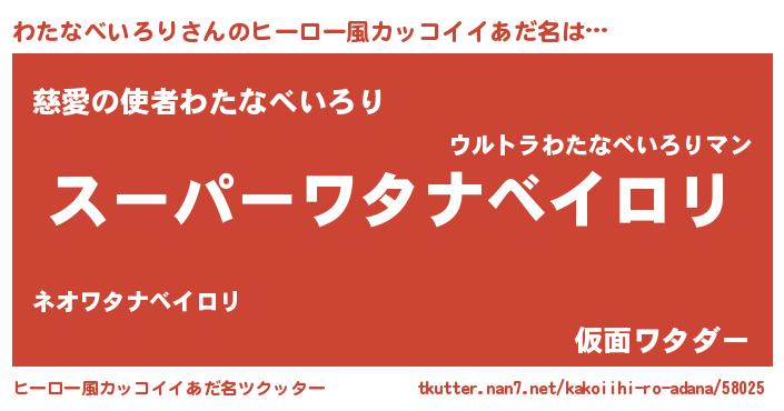 | 男性向けラノベタイトル風あだ名 | 『はたらくわたなべいろりさま!』 |