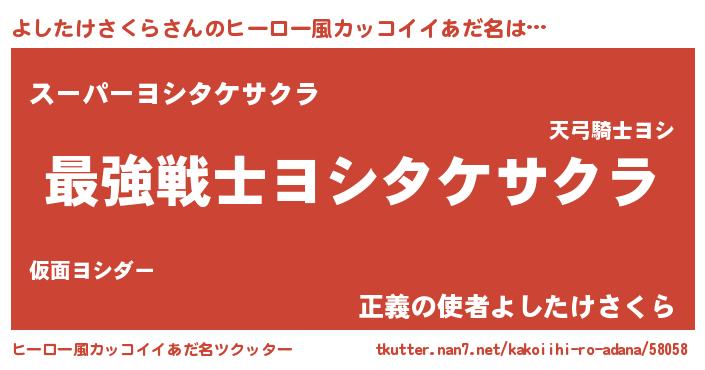 | 伝説のあだ名 | 『封印されしスナイパーよしたけさくら』 |