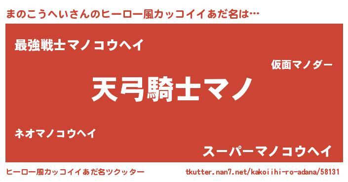 | 男性向けラノベタイトル風あだ名 | 『まのこうへいの嫁は女の子じゃないと思った?』 |